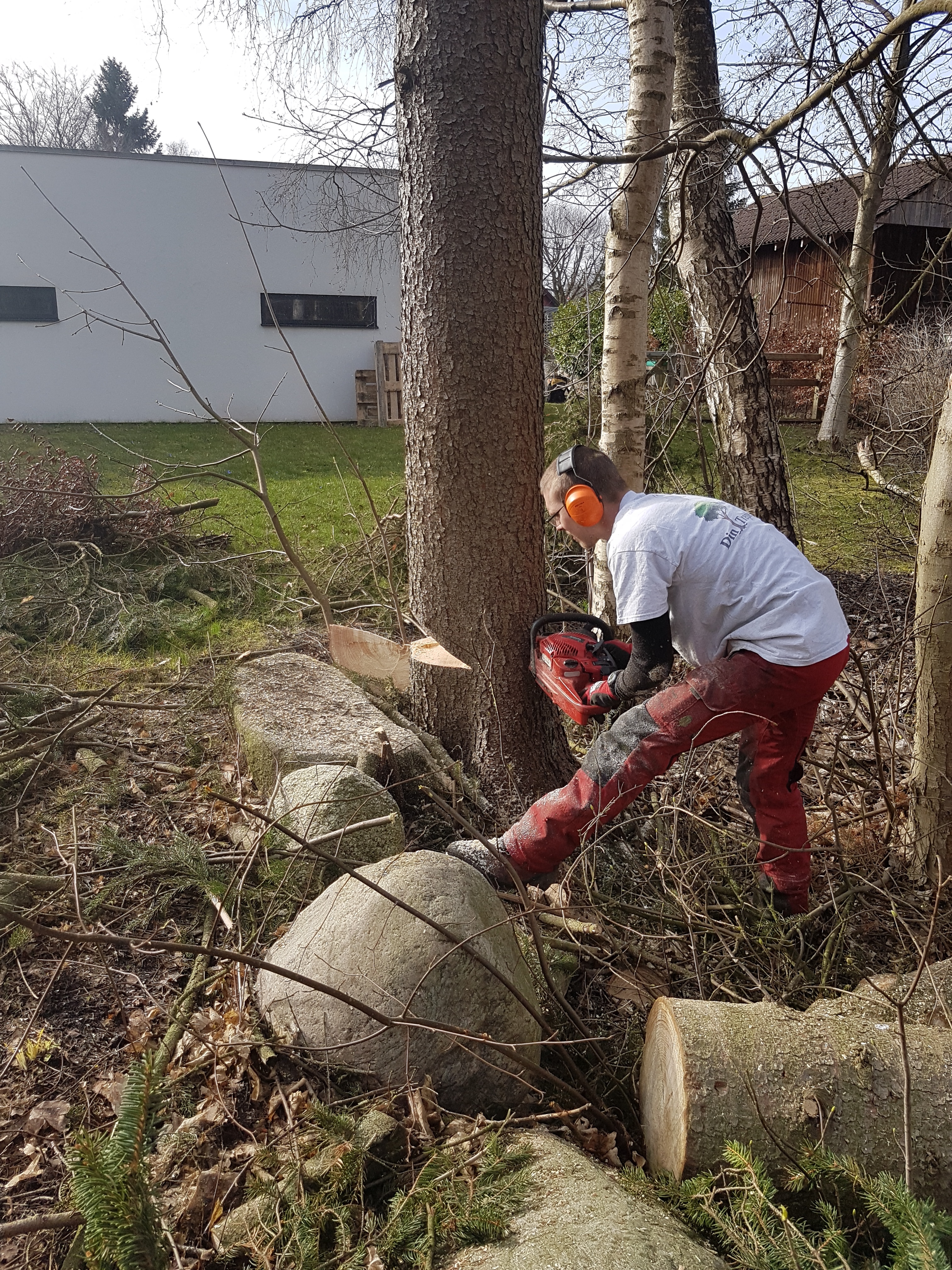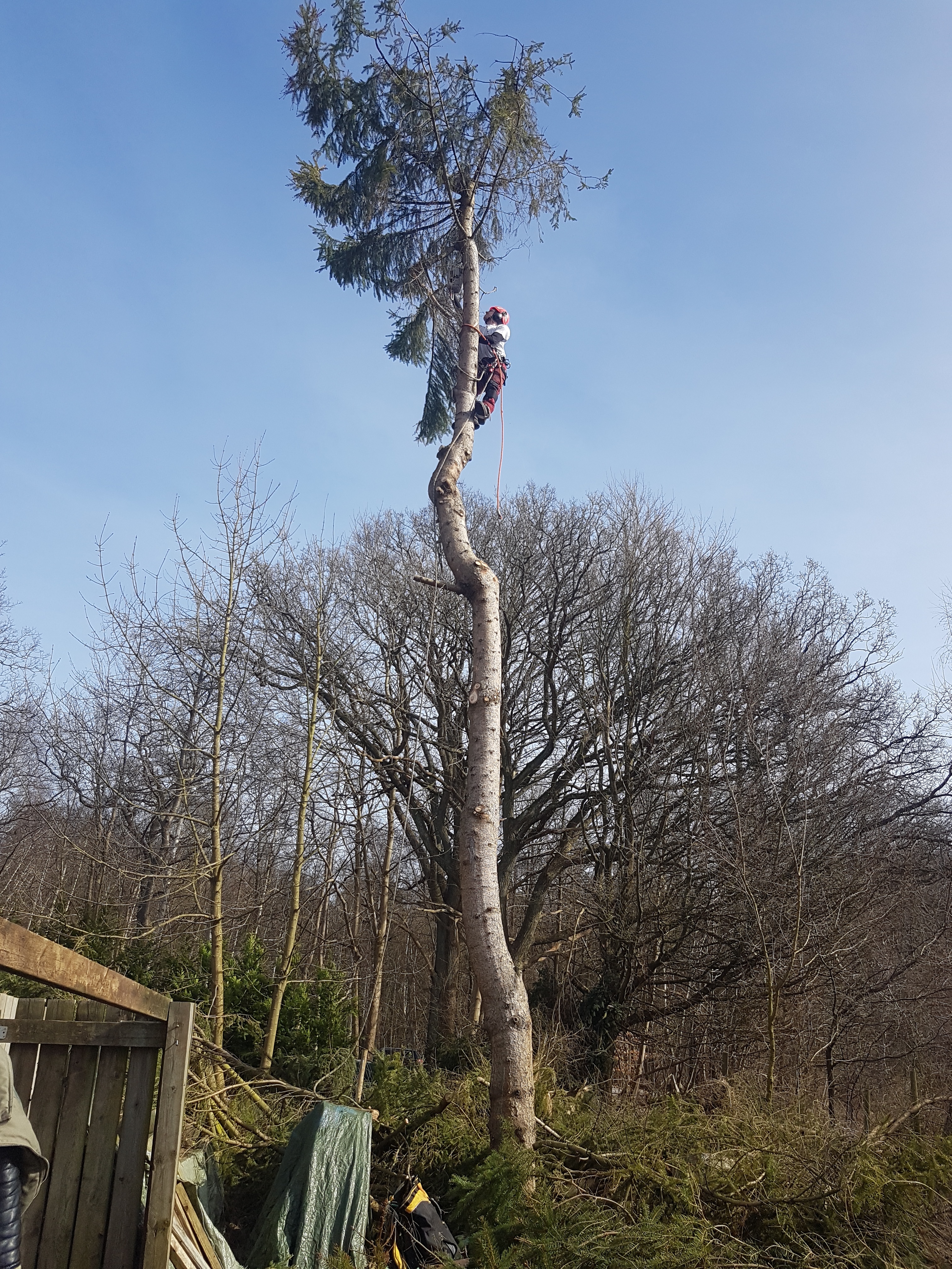 Din Træpleje tilbyder fældning af træer i alle størrelser, både det lille æbletræ i forhaven, eller de store grantræer ind mod naboen.